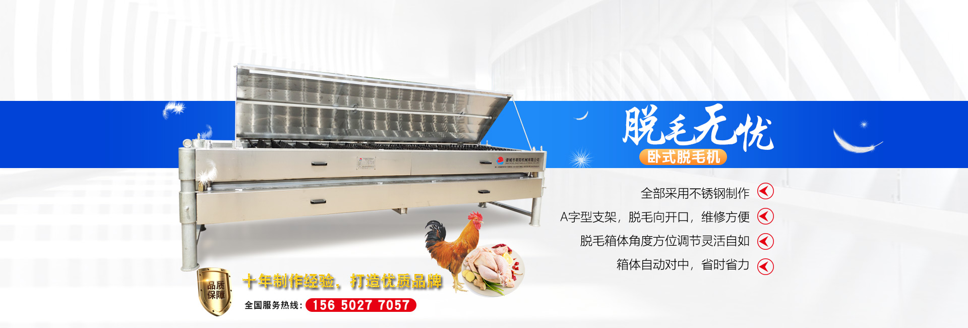 公司長(zhǎng)期與國內(nèi)外屠宰加工企業(yè)合作,走引進(jìn)——消化——?jiǎng)?chuàng)新和自主研發(fā)相結(jié)合的道路,在國內(nèi)外同類產(chǎn)品的基礎(chǔ)上,不斷更新和改造。公司主要設(shè)備有:A字型立式脫毛機(jī)、臥式脫毛機(jī)、強(qiáng)力噴淋機(jī)、松毛機(jī)、浸燙池、螺旋預(yù)冷機(jī)、禽籠清洗機(jī)、電暈機(jī)、兔扯皮機(jī)、兔割前爪/后爪機(jī)、剝胗機(jī)、自動(dòng)洗鉤機(jī)、螺旋燙爪機(jī)、雞爪脫皮機(jī)、分割輸送帶等屠宰用設(shè)備。其中,公司獨(dú)力發(fā)明生產(chǎn)設(shè)計(jì)的“電動(dòng)調(diào)節(jié)脫毛機(jī)”及“自動(dòng)控水控溫浸燙池”順利通過知識(shí)產(chǎn)權(quán)局的實(shí)質(zhì)性審查。公司所生產(chǎn)的設(shè)備 可與國外同類產(chǎn)品配套使用,設(shè)備遠(yuǎn)銷阿爾及利亞、澳大利亞等中東、非州等并建立了長(zhǎng)期穩(wěn)定的合作關(guān)系。